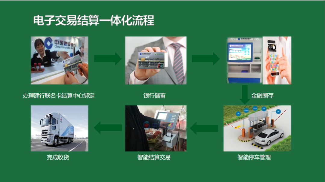 最后,电子交易结算一体化,通过以交易结算为切入点,以线上APP和银行联名卡为载体,做到农产品批发市场商品溯源,入场管理,电子结算交易,出场管理,360度一体化管理。