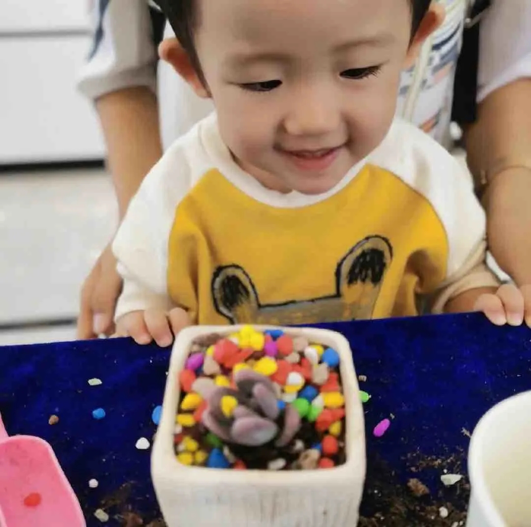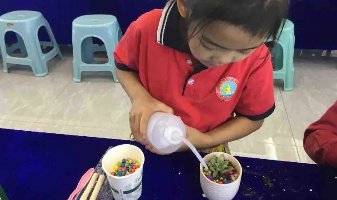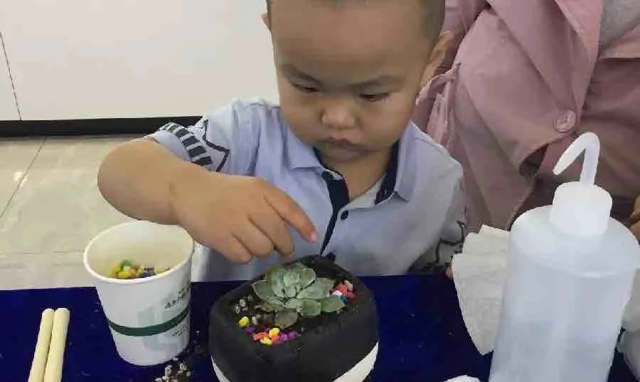 多肉DIY需要巧妙的构思,小朋友们纷纷发挥自己的想象力:有的小朋友独自创造自己的彩色世界,认真地模样惹人爱;有的小朋友和爸爸妈妈一起上阵,共同参与其乐融融。一培土一植物,皆能展现其独特魅力。
