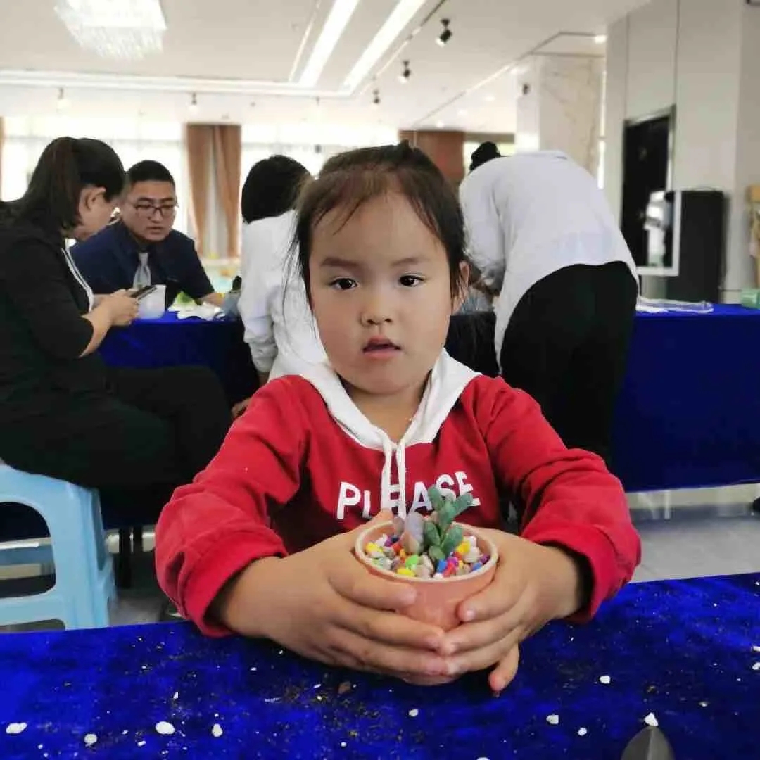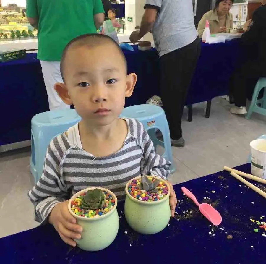形态各异的多肉盆栽,呈现了一场缤纷的植物盛宴,家长和小朋友们热情满满。