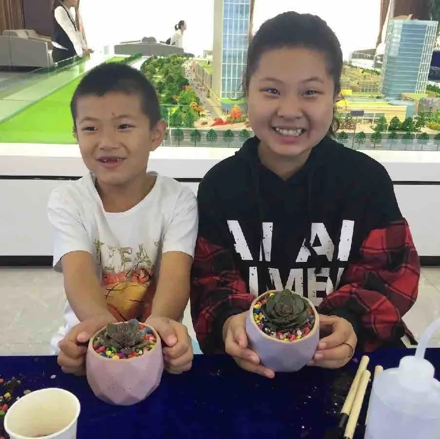 上午九点活动正式开始,大小朋友们陆陆续续来到展示中心,工作人员将准备好的多肉植物、小花盆、装饰道具发放给大家,并为大家讲解了多肉移栽种植的方法,在场的大小朋友们都跃跃欲试。