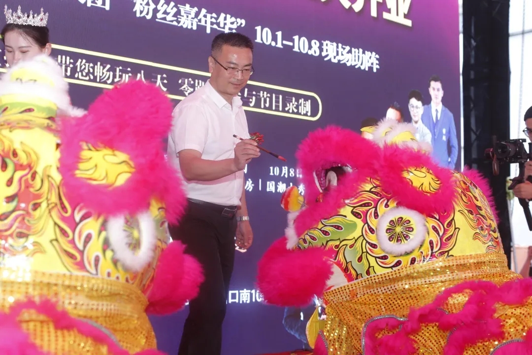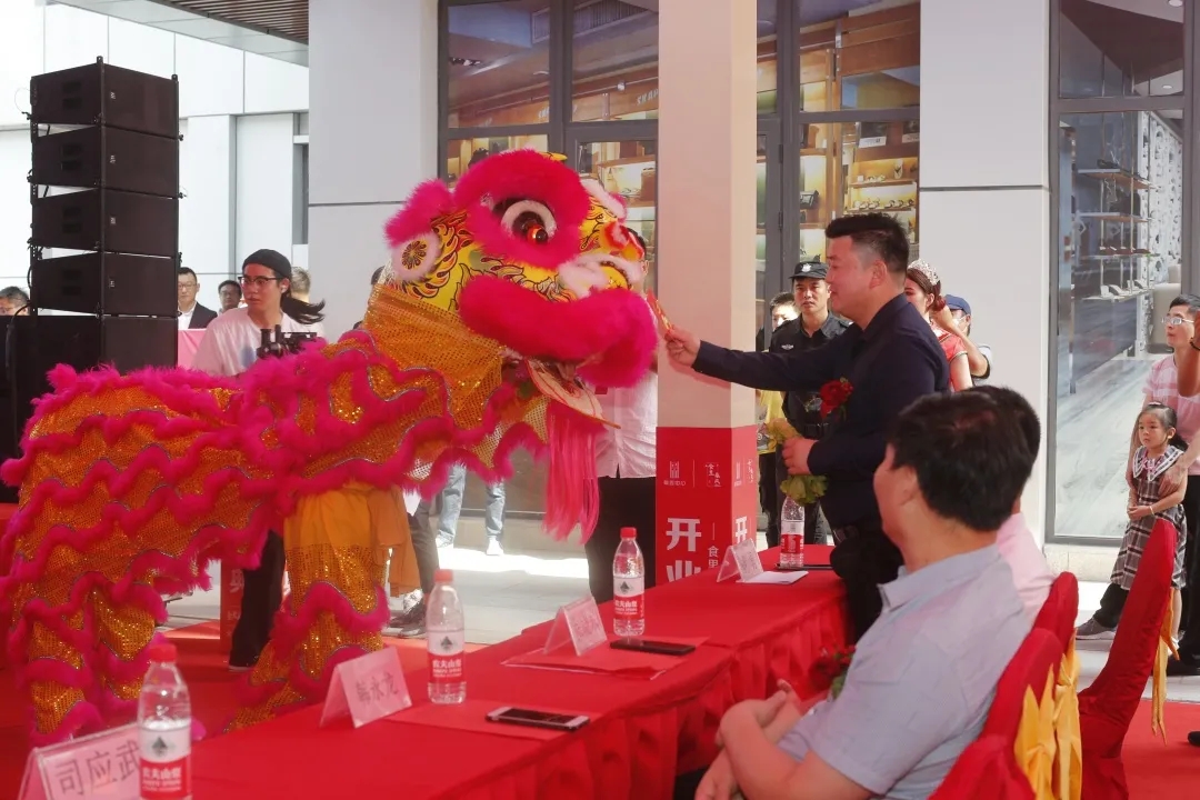 最激动人心的当属“祥狮采青”表演。安徽云顶集团集团总裁张晓东先生与安徽捷成商管总经理王兴建先生登台为祥狮点睛,送上红包祝福。一点左眼,寓意金坛吾悦灵气满身;二点右眼,寓意金坛吾悦“志在乾坤,金玉满堂”;三点天庭,寓意食里春风美食嗨街鸿运当头福星高照。点睛结束,沉睡的祥狮逐渐苏醒,踏着祥瑞春风开始采青表演。祥狮爬上高杆采青,预祝食里春风美食嗨街一定会步步高升大展宏图。祥狮采青结束,开始抛青,祥狮将得到的财富与祝福抛出,送给在场的每一位尊敬的来宾。安徽省酷乐汇餐饮管理有限公司总经理甄勇先生为祥狮接青,并送上红包祝福。