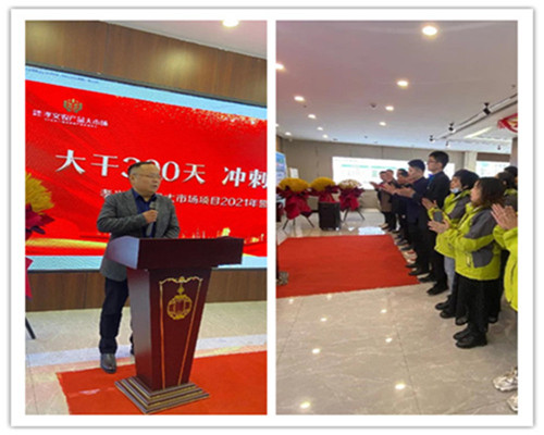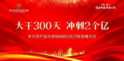 只争朝夕,不负韶华,新征程,续辉煌。2021年3月1日,中云顶集团农·孝义农产品大市场各位领导、员工、销售精英齐聚展示中心,举行“2021年开工誓师大会”,此次活动主题为“大干300天 冲刺2个亿”!