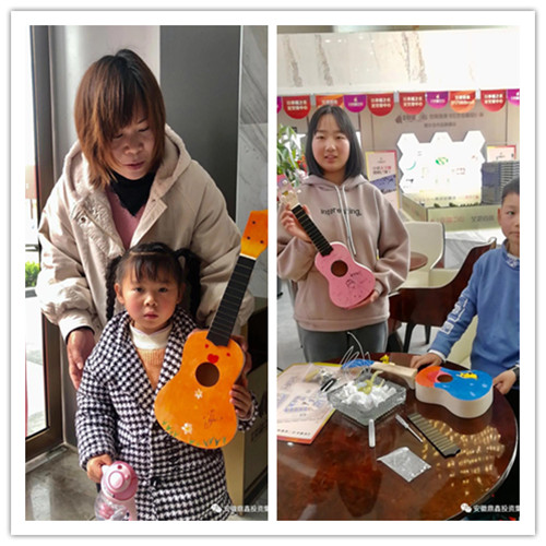 为了激发孩子创造美的兴趣,增强孩子对手工制作的热情,促进家长和孩子之间的亲子感情,发展孩子的创造力和动手操作能力。3月21日,幸福中心特开展了亲子尤克里里DIY制作课程,让孩子们打造属于自己的乐器。