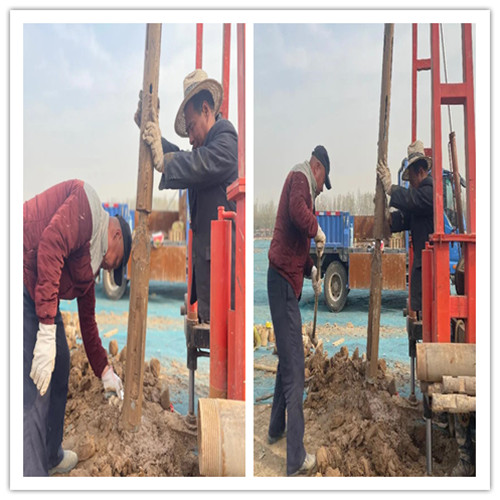 地质勘察过程采用机钻对地下土层进行采样,数据分析,评估地下土层的承载力。