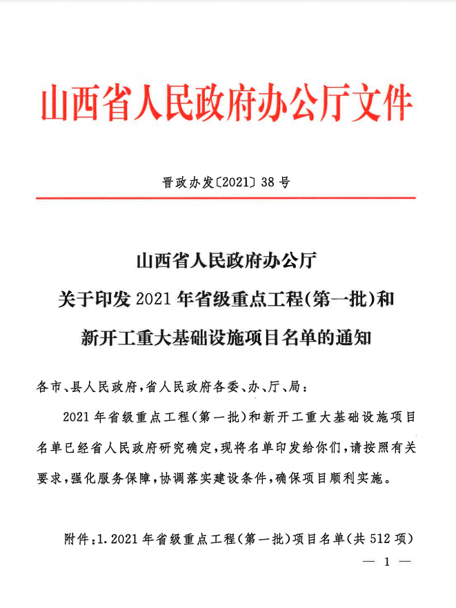 2021年省级重点工程