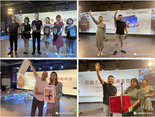 生日会设置了抽奖环节,精美的礼品陆续中出。最终由董事长亲自抽出迪士尼双人游大奖!