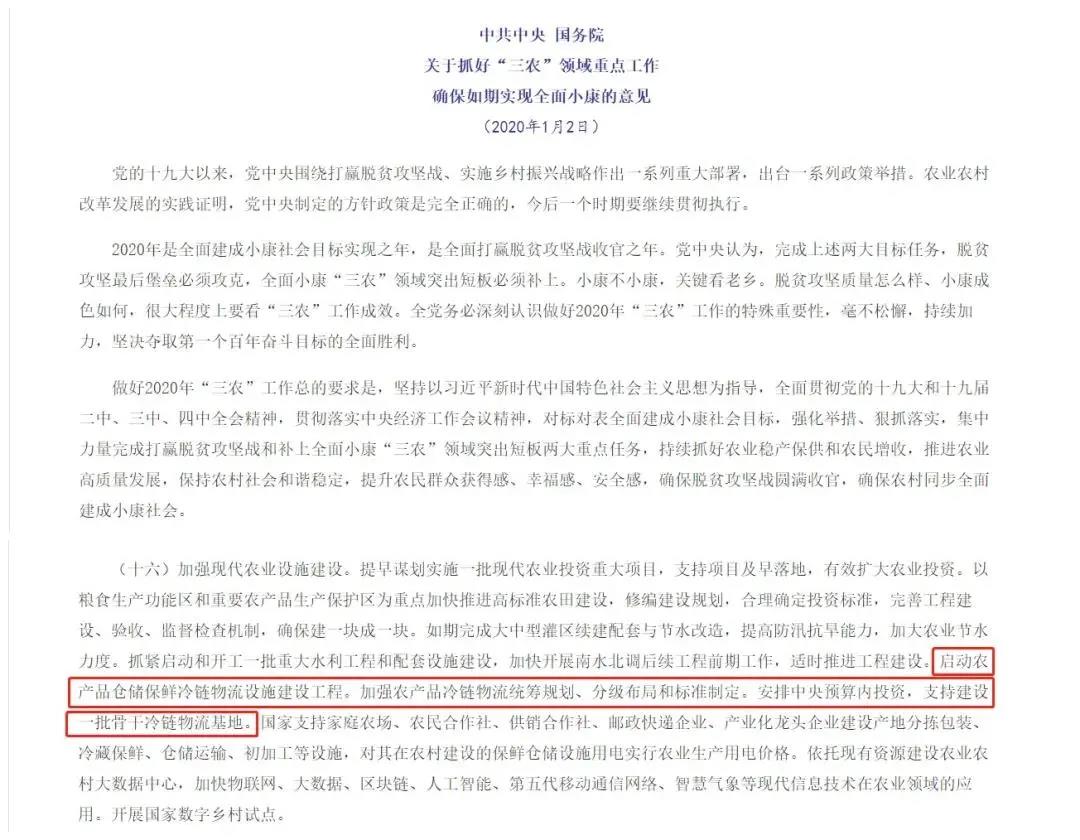 与冷链建设的政策要求