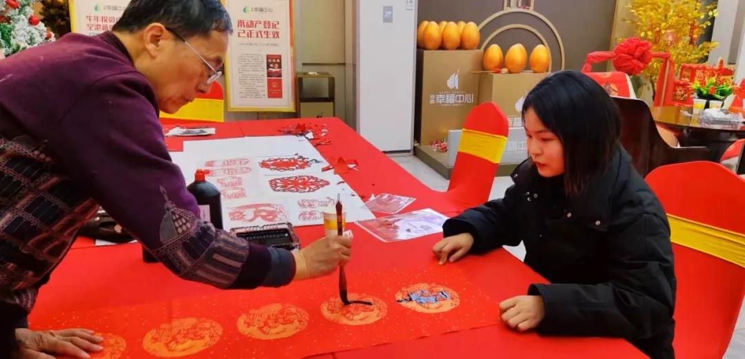 1月23日全天,喜迎春节活动—书法老师手书新春对联、窗花剪裁DIY活动在云顶集团·幸福中心售楼中心圆满举行!