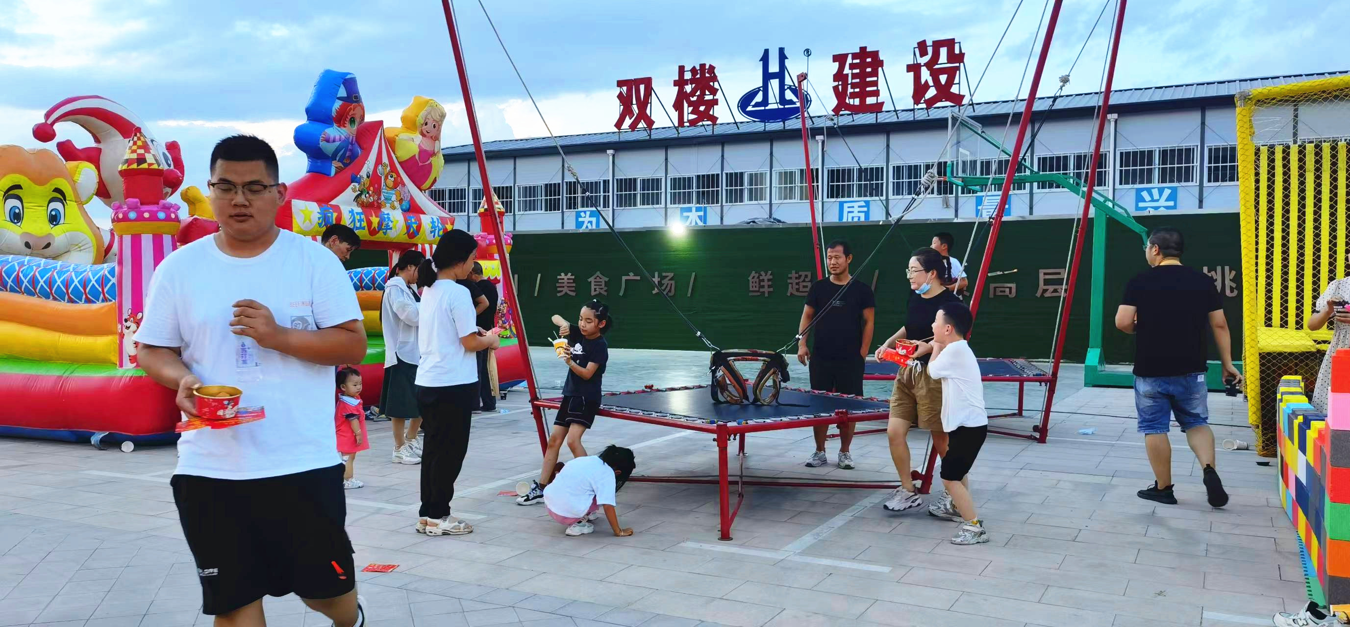 项目还特意为小朋友准备了网红蹦床、充气城堡、蹦极等多款儿童娱乐设备,看着孩童们愉快的玩耍,家长们也无比享受着这个亲子娱乐的假期。