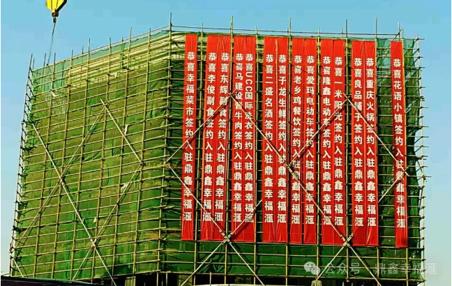 在5#的醒目之处,首批签约商户的条幅正迎风招展,似烈烈旌旗宣告着胜利的开篇。那鲜艳夺目的色彩,宛如燃烧的火焰,点燃了这片土地上的商业激情。每一条条幅都是荣耀的勋章,闪耀着合作的光芒,它们在风中舞动,向世界昭告着一个崭新商业时代的崛起。这些商户率先携手,以无畏的勇气和前瞻的眼光,扎根于这片充满潜力的土壤,此刻,工地不再仅仅是砖石的堆砌,而是梦想与财富交织的摇篮,未来繁华商业的盛景已在这飘扬的条幅间初现雏形,一场商业传奇的序章就此激昂奏响!