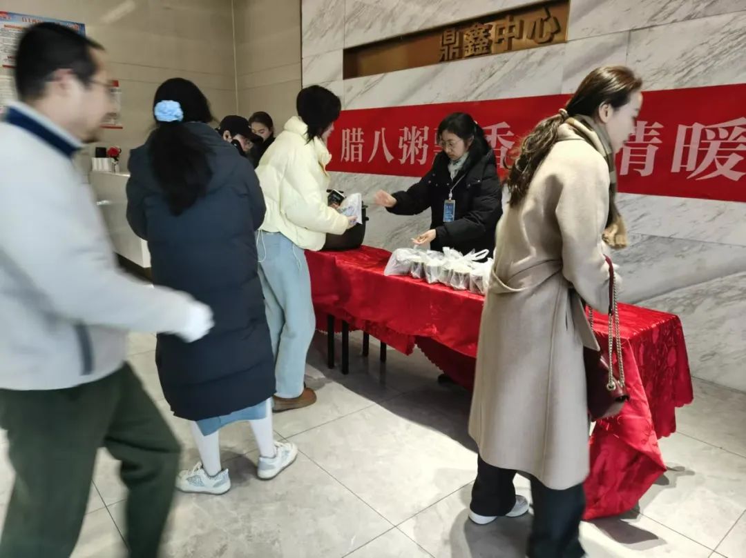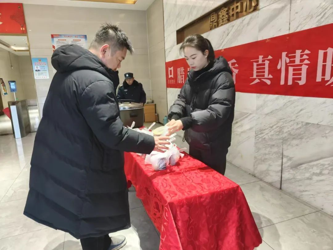 2025 年1月7日,腊八节当天,云顶集团中心 A 座大厅内洋溢着温暖与欢乐。佳旭物业精心筹备的 “暖心送粥 + 鸡蛋” 活动在这里温情上演,为每一位路过的业主送上了一份浓浓的节日关怀。