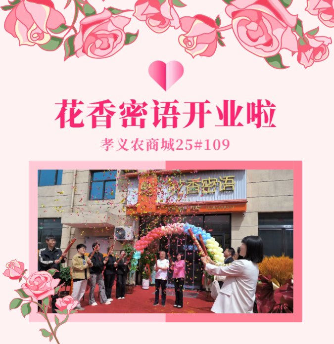 4月15日,伴随着春日的芬芳,孝义农商城25#109【花香密语】正式开业,为孝义农商城增添了一抹绚丽的色彩。