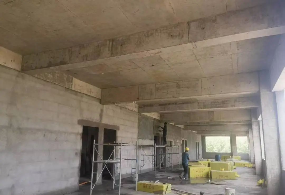 5#楼内墙水电预埋封堵完成,喷浆挂网完成,内墙大面积开始粉刷。 外墙保温施工完成整体40%。