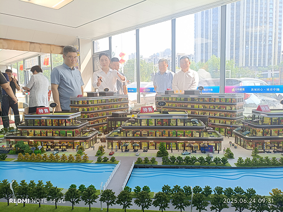 随后又来到项目沙盘,讲解员为一行人进行详细阐述,云顶集团・幸福滙作为集现代化智慧农贸市场与新生活购物中心于一体的商业综合体,其创新的商业模式与先进的智慧化运营理念,吸引了领导们的高度关注。从智慧农贸市场的智能溯源系统,到新生活购物中心的多元业态布局,每一处细节都展现着项目的独特魅力与前瞻性。