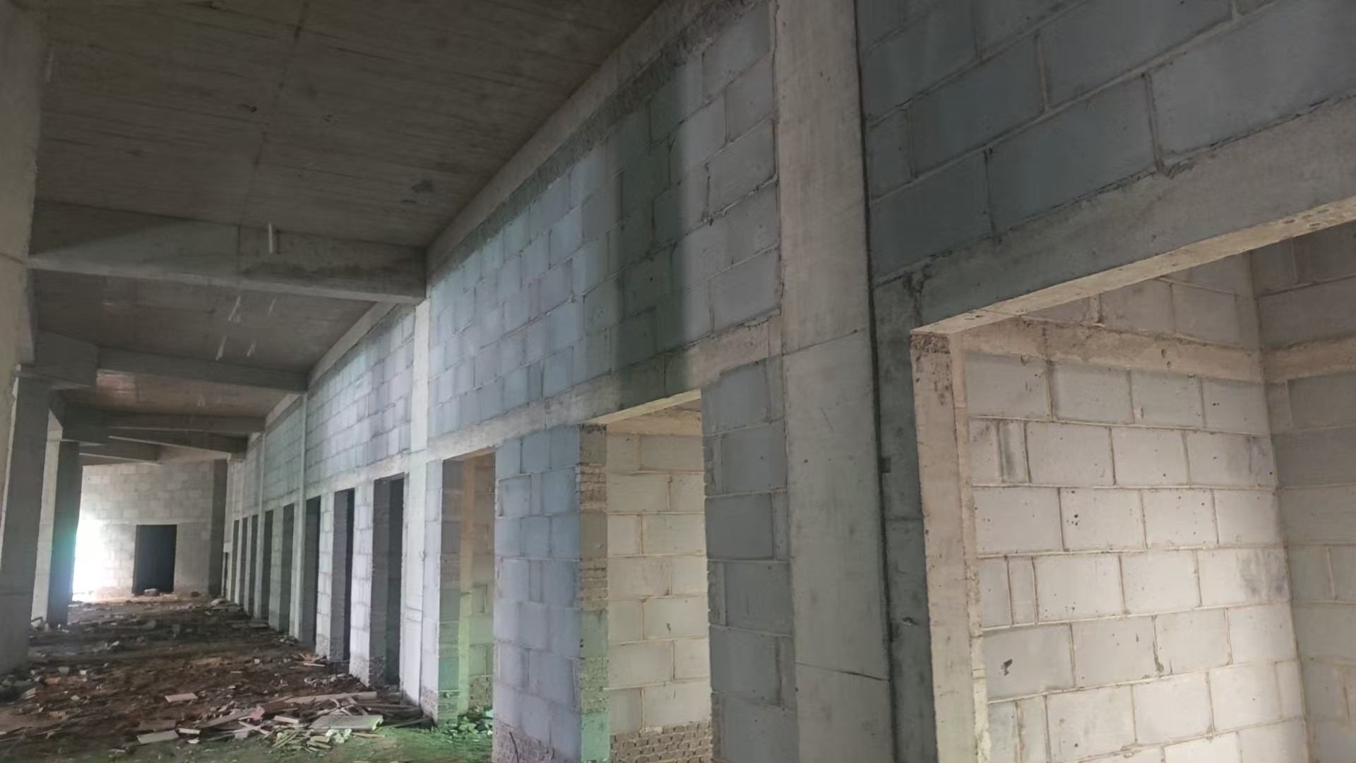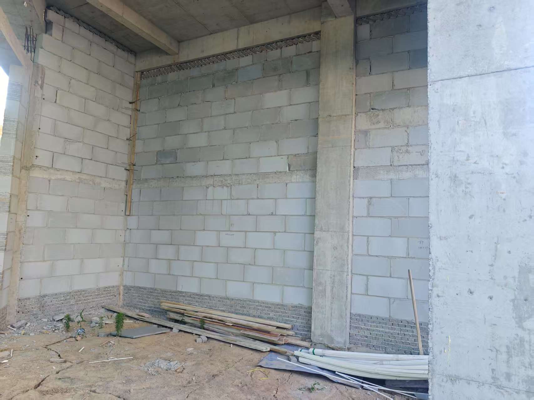 1#楼水电预埋完成,墙体粉刷完成50%。