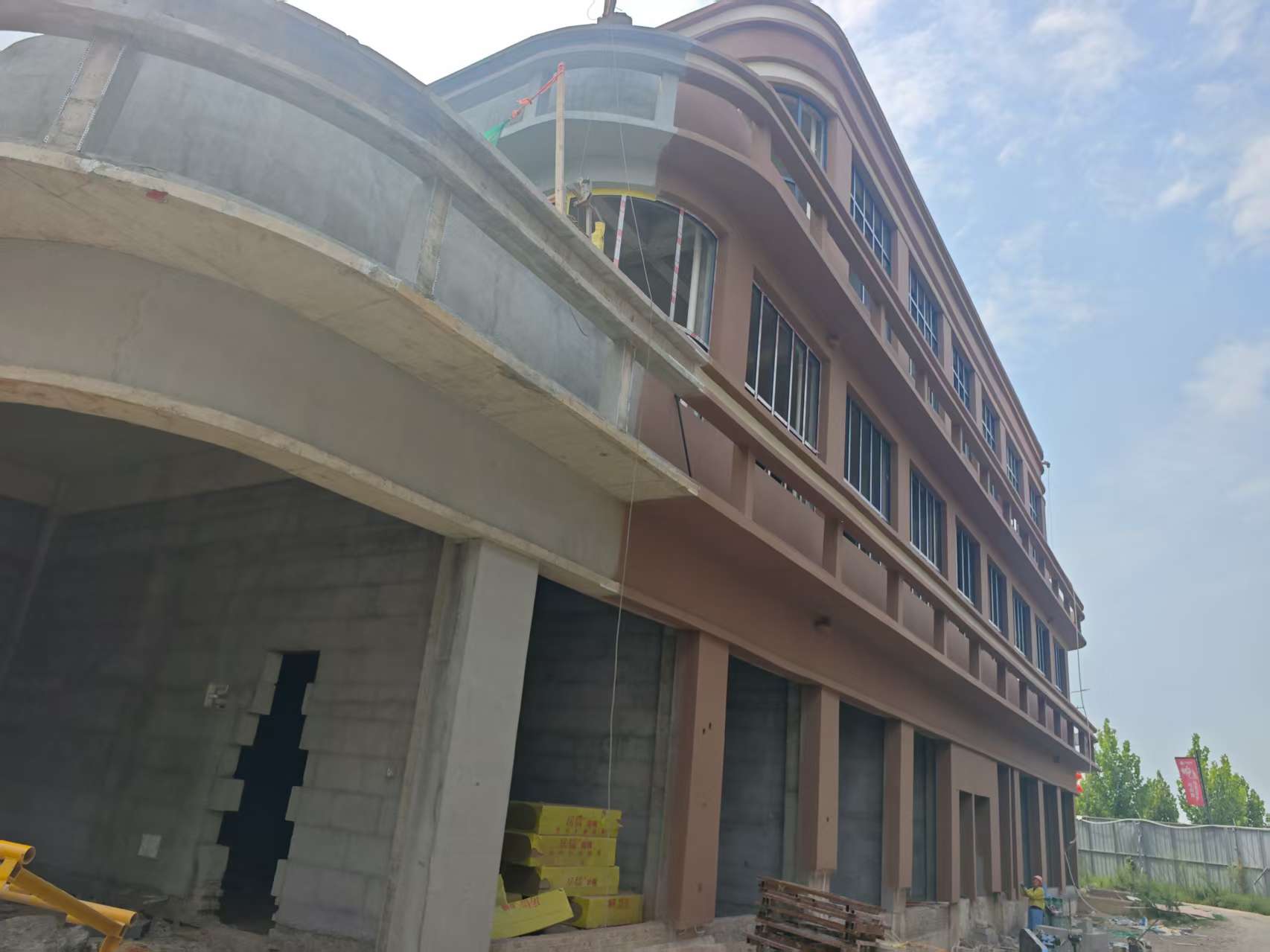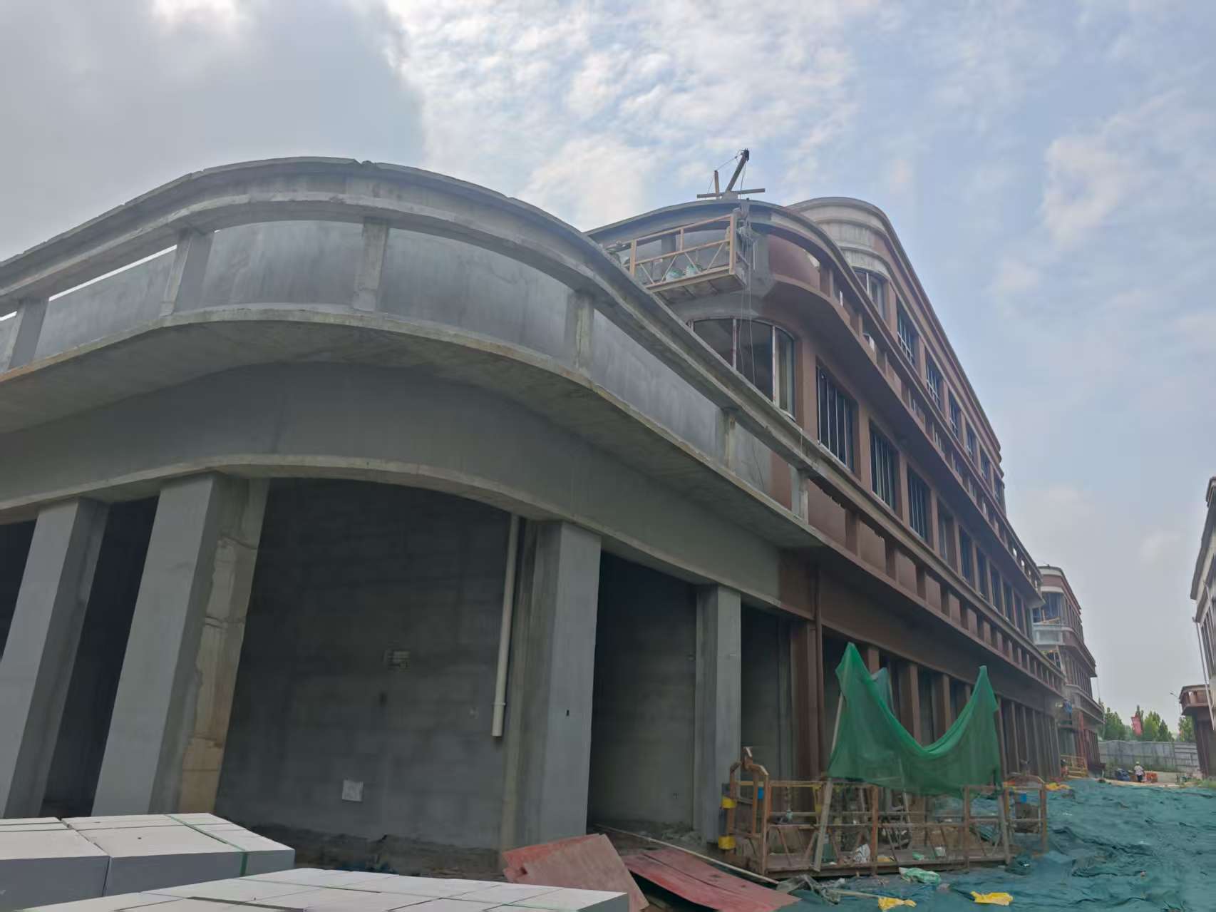 2#楼门窗安装完成75%,外墙保温施工完成。外墙真石漆完成整体70%