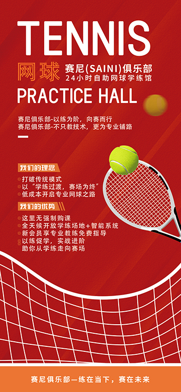 赛尼(SAINI)俱乐部始终秉持 “以练为阶,向赛而行” 的理念,此次入驻的 24 小时自助网球学练馆更是打破传统网球培训模式,以 “学练过渡,赛场为终” 为核心,助力大众低成本开启专业网球之路。