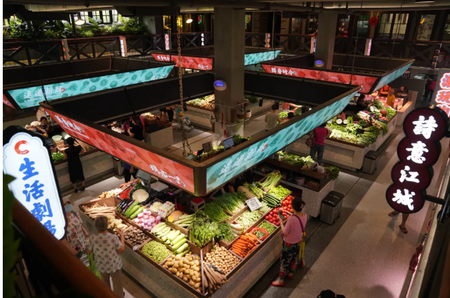 好在,菜市场也很努力。这几年,特别是今年以来,各地都在推动菜市场的改造升级。改善市场环境,让买菜的居民能有更好的购物体验;完善各种质量监管系统,包括5G、大数据的应用,让菜市场的食品质量安全更能有保障,也让蔬菜瓜果从田间地头到餐桌的流通更加顺畅……