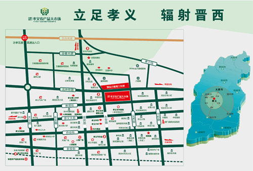 孝义农产品大市场是孝义首个一站式农副产品交易中心,是孝义市及周边规模最大、品种最全、配套最齐全的现代农批市场。