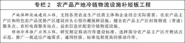 完善冷链源头基点网络。适应不同农产品冷链物流要求,引导家庭农场、农民合作社、农村集体经济组织等在重点镇和中心村,结合实际需要分区分片合理集中建设产地冷藏保鲜设施。发展产地冷链物流设施设备租赁等社会化服务,探索发展共享式“田头小站”等移动冷库,提高产地源头冷链物流设施综合利用效率。