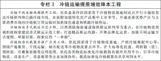 发展质量不断提升。初步形成产地与销地衔接、运输与仓配一体、物流与产业融合的冷链物流服务体系。冷链物流设施服务功能不断拓展,全链条温控、全流程追溯能力持续提升。冷链甩挂运输、多式联运加快发展。冷链物流口岸通关效率大幅提高,国际冷链物流组织能力显著增强。