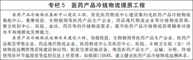 提升医药产品冷链物流应急保障水平。研究将医药产品冷链物流纳入国家应急物资保障平台,整合行业医药冷库、车辆、标准化载器具等资源,健全应急联动服务及统一调度机制,提高医药产品冷链应急保障能力。完善全国统一的医药产品冷链物流特别管理机制,保障紧急状态下疫苗及其他医药产品冷链运输畅通和物流过程质量安全。